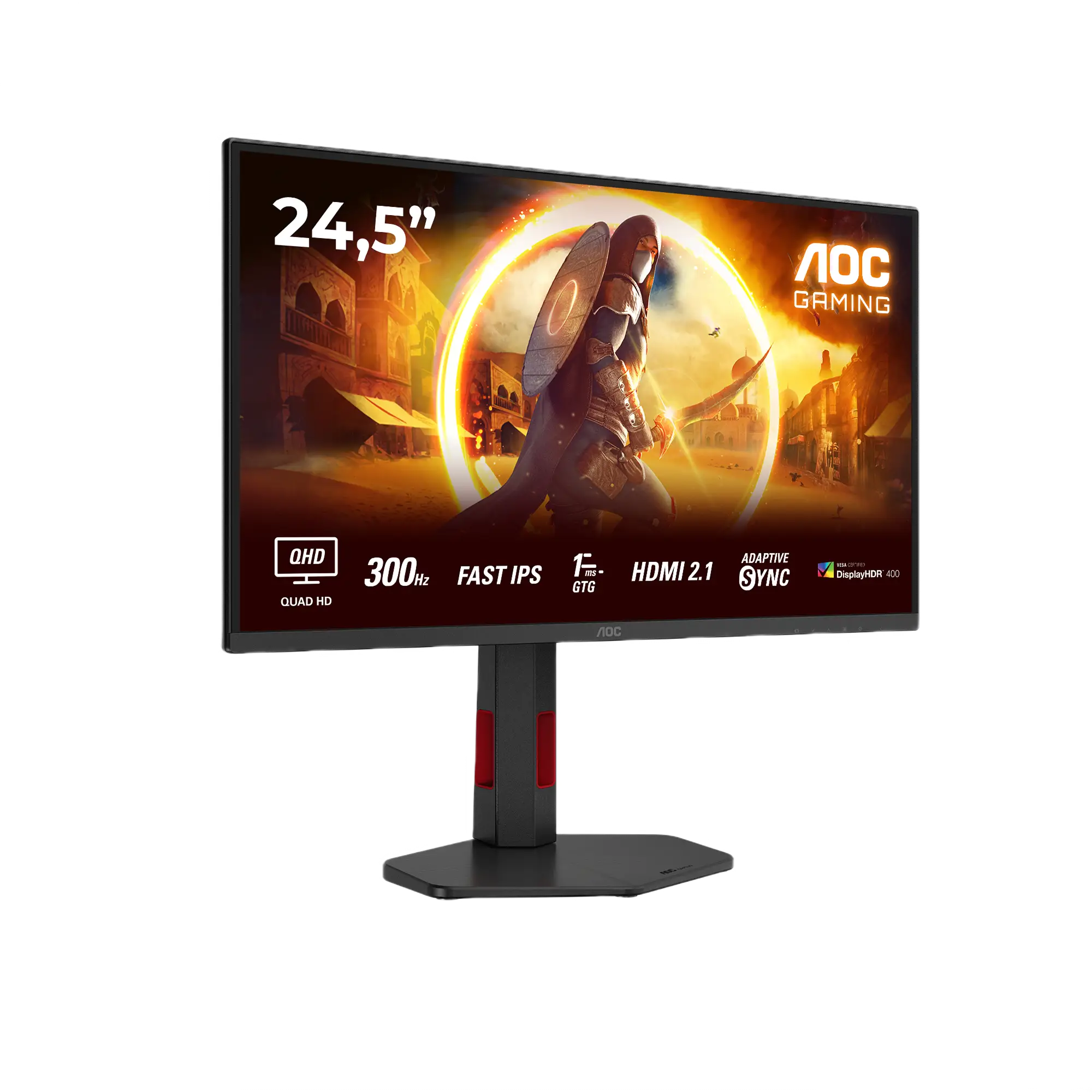 AOC G4 Q25G4SR. Dimensioni diagonale schermo: 62,2 cm (24.5″), Risoluzione del display: 2560 x 1440 Pixel, Tipologia HD: Quad HD, Tecnologia display: LED, Tempo di risposta: 1 ms, Rapporto d’aspetto nativo: 16:9, Angolo di visualizzazione (orizzontale): 178°, Angolo di visualizzazione (verticale): 178°. Altoparlanti incorporati. Montaggio standard VESA, Regolazione altezza. Colore del prodotto: Nero, Rosso